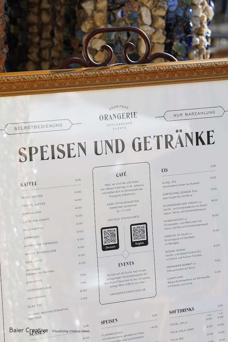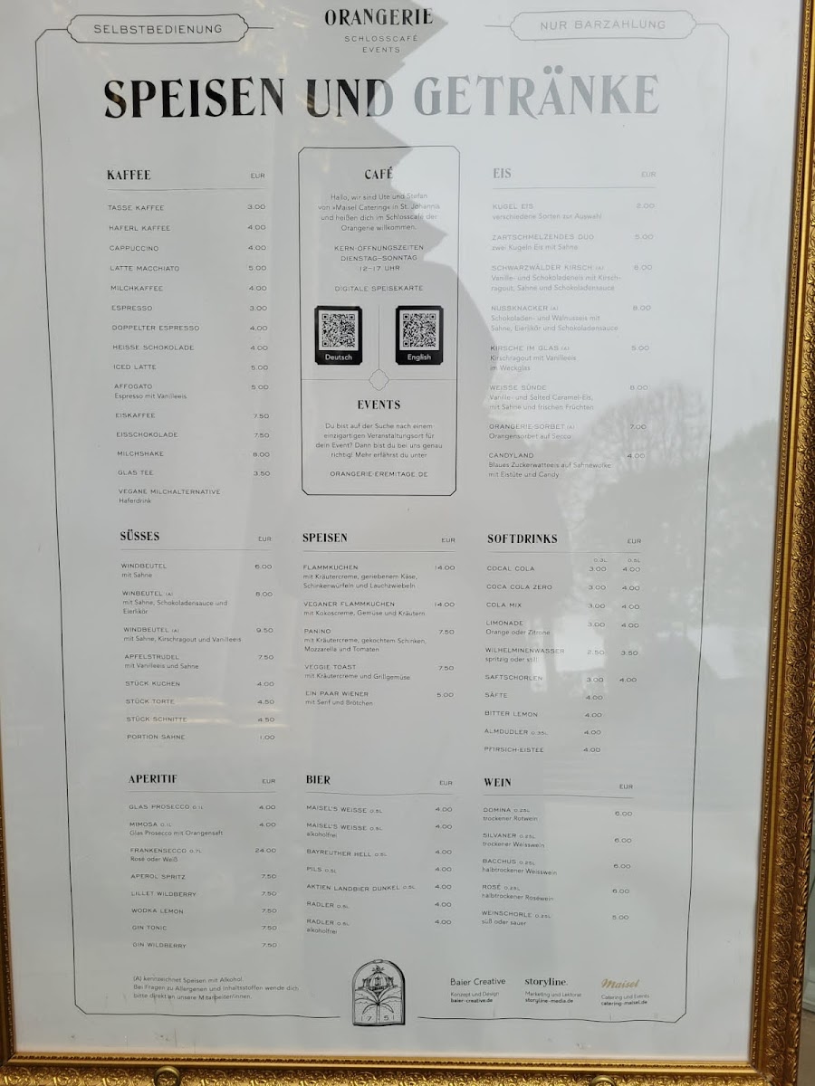Welcome to the delightful Schlosscafé Orangerie Eremitage, nestled in the picturesque grounds of Eremitage, Bayreuth. This charming cafe offers a memorable culinary experience complemented by breathtaking views. The menu features a selection of hearty snacks and decadent cakes that have received glowing reviews from visitors. Julia Rüdiger-Bär praises the delicious pastries and refreshing Spritz, claiming it feels like a mini-vacation.